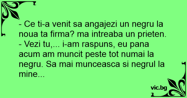 - Ce ti-a venit sa angajezi un negru la noua ta firma? ma intreaba un prieten.