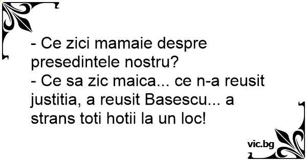 - Ce sa zic maica... ce n-a reusit justitia, a reusit Basescu... a strans toti hotii la un loc!