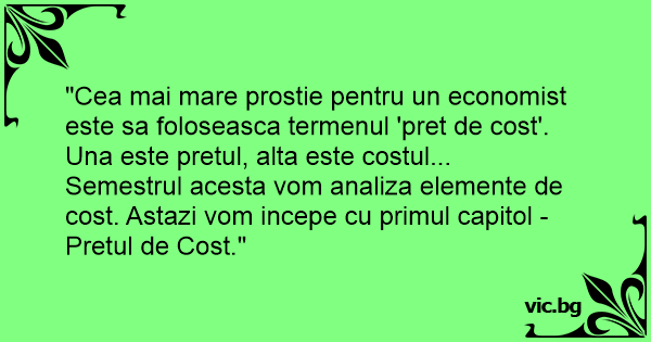 "Cea mai mare prostie pentru un economist este sa foloseasca termenul 'pret de cost'. Una este pretul, alta este costul...