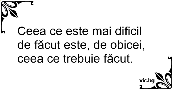 Ceea ce este mai dificil de făcut este, de obicei, ceea ce trebuie făcut.