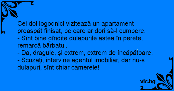 - Scuzaţi, intervine agentul imobiliar, dar nu-s dulapuri, sînt chiar camerele!