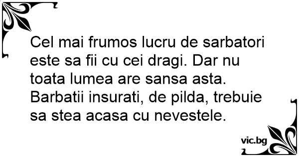 Cel mai frumos lucru de sarbatori este sa fii cu cei dragi. Dar nu toata lumea are sansa asta. Barbatii insurati, de pilda, trebuie sa stea acasa cu nevestele.