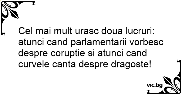 Cel mai mult urasc doua lucruri: atunci cand parlamentarii vorbesc despre coruptie si atunci cand curvele canta despre dragoste!