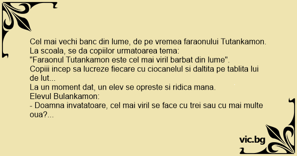 - Doamna invatatoare, cel mai viril se face cu trei sau cu mai multe oua?...