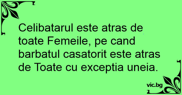 Celibatarul este atras de toate Femeile, pe cand barbatul casatorit este atras de Toate cu exceptia uneia.