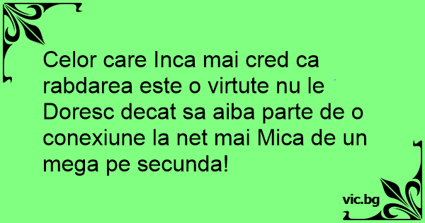 Celor care Inca mai cred ca rabdarea este o virtute nu le Doresc decat sa aiba parte de o conexiune la net mai Mica de un mega pe secunda!