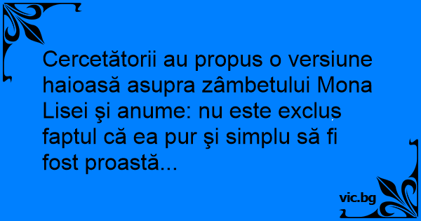 Cercetătorii au propus o versiune haioasă asupra zâmbetului Моnа Lisei şi anume: nu este exclus faptul că ea pur şi simplu să fi fost proastă...