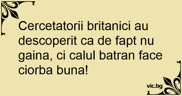 Cercetatorii britanici au descoperit ca de fapt nu gaina, ci calul batran face ciorba buna!