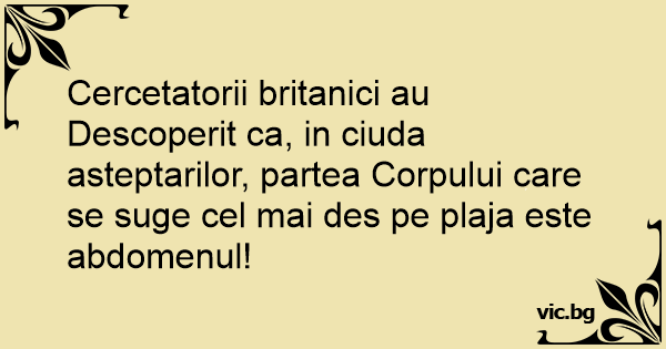 Cercetatorii britanici au Descoperit ca, in ciuda asteptarilor, partea Corpului care se suge cel mai des pe plaja este abdomenul!