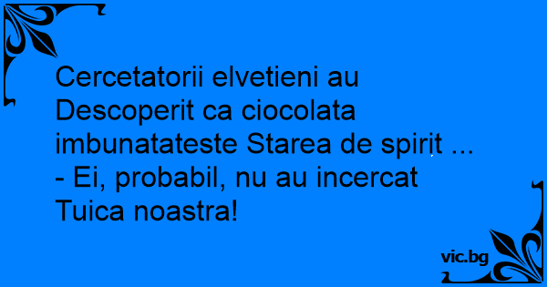 - Ei, probabil, nu au incercat Tuica noastra!