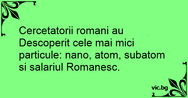 Cercetatorii romani au Descoperit cele mai mici particule: nano, atom, subatom si salariul Romanesc.