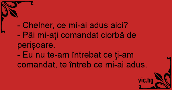 - Păi mi-aţi comandat ciorbă de perişoare.