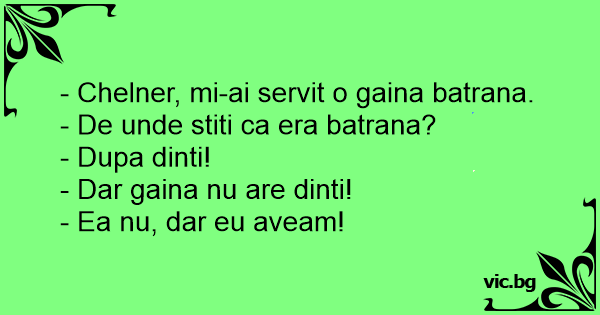 - Chelner, mi-ai servit o gaina batrana.
