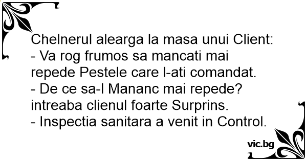 - De ce sa-l Mananc mai repede? intreaba clienul foarte Surprins.