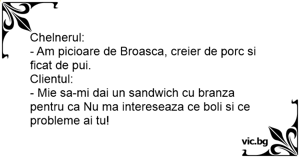 - Mie sa-mi dai un sandwich cu branza pentru ca Nu ma intereseaza ce boli si ce probleme ai tu!