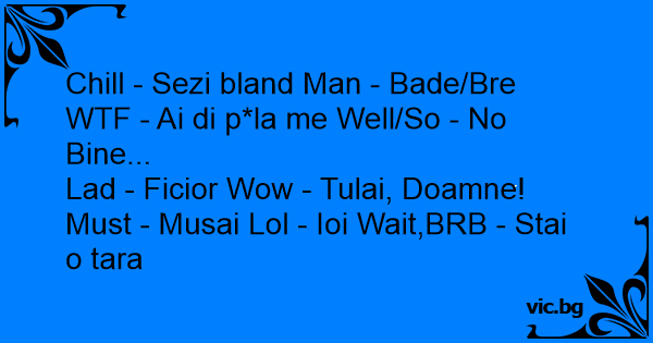 Chill - Sezi bland Man - Bade/Bre WТF - Ai di p*la me Well/So - No Bine...