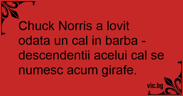 Chuck Norris a lovit odata un cal in barba - descendentii acelui cal se numesc acum girafe.