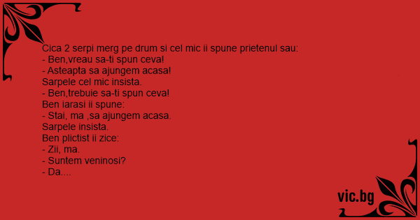 Cica 2 serpi merg pe drum si cel mic ii spune prietenul sau: