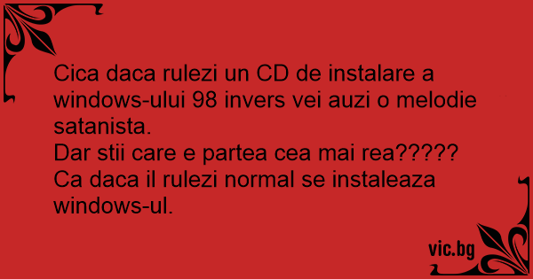 Cica daca rulezi un CD de instalare a windows-ului 98 invers vei auzi o melodie satanista.