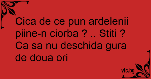 Cica de ce pun ardelenii piine-n ciorba ? .. Stiti ?