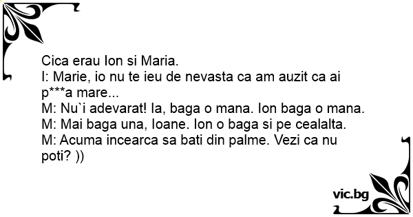 I: Marie, io nu te ieu de nevasta ca am auzit ca ai p***a mare...