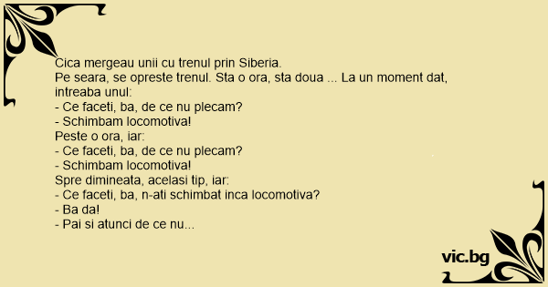 Pe seara, se opreste trenul. Sta o ora, sta doua ... La un moment dat, intreaba unul:
