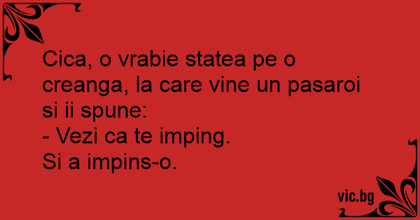 Cica, o vrabie statea pe o creanga, la care vine un pasaroi si ii spune:
