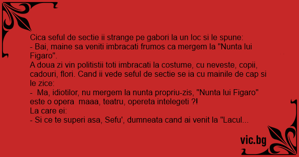 - Ma, idiotilor, nu mergem la nunta propriu-zis, "Nunta lui Figaro" este o opera maaa, teatru, opereta intelegeti ?!