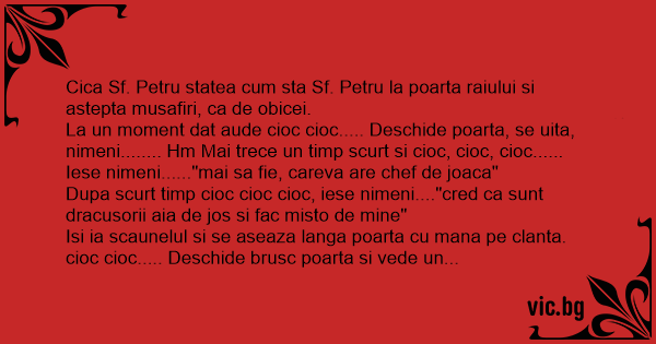 Cica Sf. Petru statea сuм sta Sf. Petru la poarta raiului si astepta musafiri, ca de obicei.