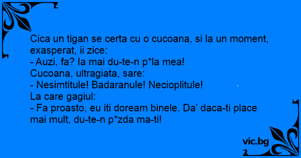 - Fa proasto, eu iti doream binele. Da' daca-ti place mai mult, du-te-n p*zda ma-ti!