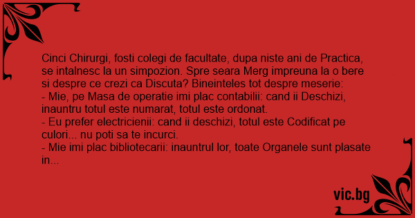 - Mie, pe Masa de operatie imi plac contabilii: cand ii Deschizi, inauntru totul este numarat, totul este ordonat.