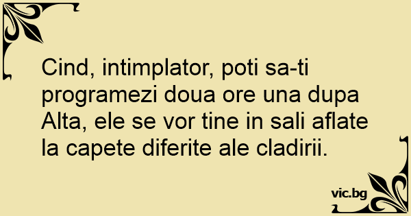 Cind, intimplator, poti sa-ti programezi doua ore una dupa Alta, ele se vor tine in sali aflate la capete diferite ale cladirii.
