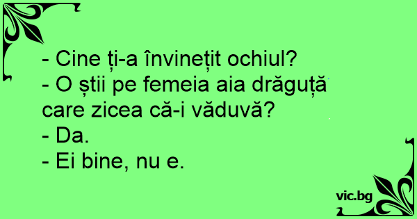 - O știi pe femeia aia drăguță care zicea că-i văduvă?