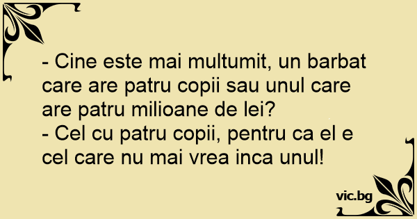 - Cine este mai multumit, un barbat care are patru copii sau unul care are patru milioane de lei?