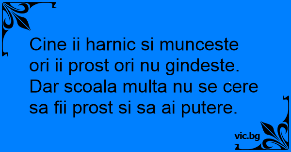 Cine ii harnic si munceste ori ii prost ori nu gindeste. Dar scoala multa nu se cere sa fii prost si sa ai putere.