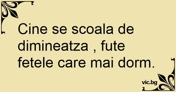 Cine se scoala de dimineatza , fute fetele care mai dorm.