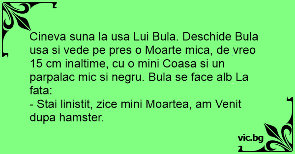 - Stai linistit, zice mini Moartea, am Venit dupa hamster.