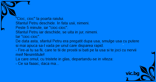 Sfantul Petru iar deschide, se uita in jur, nimeni.
