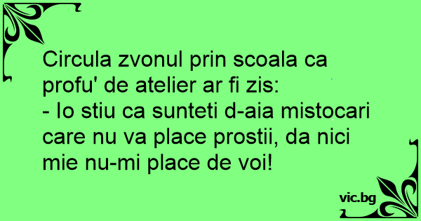 - Io stiu ca sunteti d-aia mistocari care nu va place prostii, da nici mie nu-mi place de voi!