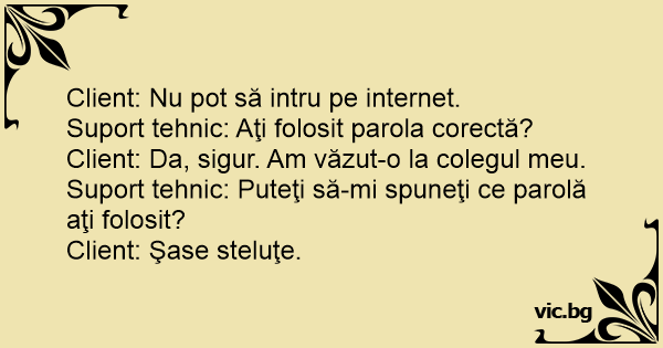 Suport tehnic: Puteţi să-mi spuneţi ce parolă aţi folosit?