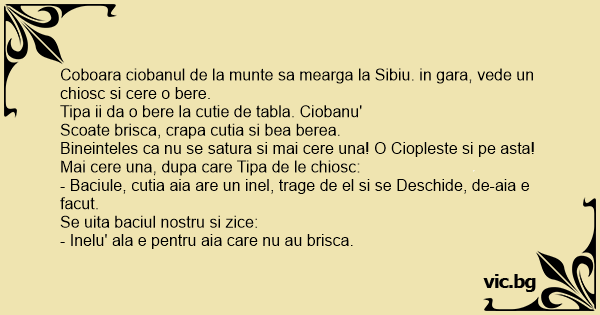 Coboara ciobanul de la munte sa mearga la Sibiu. in gara, vede un chiosc si cere o bere.