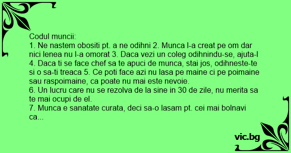 7. Munca e sanatate curata, deci sa-o lasam pt. cei mai bolnavi ca noi.