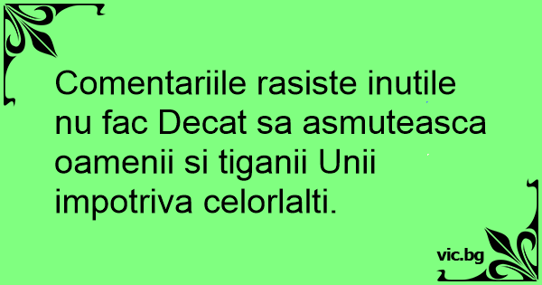 Comentariile rasiste inutile nu fac Decat sa asmuteasca oamenii si tiganii Unii impotriva celorlalti.
