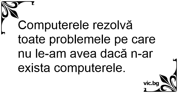 Computerele rezolvă toate problemele pe care nu le-am avea dacă n-ar exista computerele.