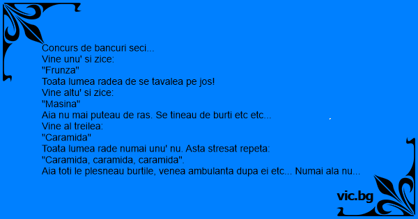 Aia nu mai puteau de ras. Se tineau de burti etc etc...