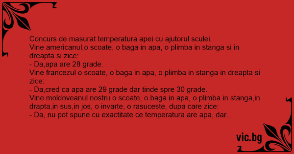 Vine moldoveanul nostru o scoate, o baga in apa, o plimba in stanga,in drapta,in sus,in jos, o invarte, o rasuceste, dupa care zice: