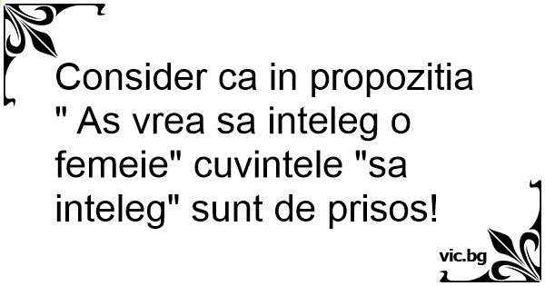 Consider ca in propozitia " As vrea sa inteleg o femeie" cuvintele "sa inteleg" sunt de prisos!