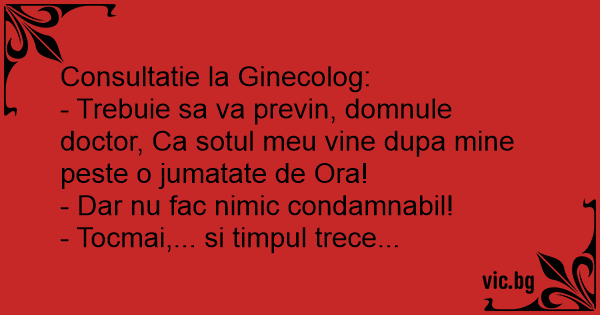 - Trebuie sa va previn, domnule doctor, Ca sotul meu vine dupa mine peste o jumatate de Ora!