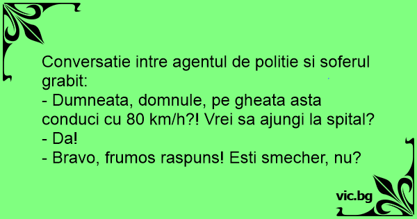 - Dumneata, domnule, pe gheata asta conduci cu 80 km/h?! Vrei sa ajungi la spital?