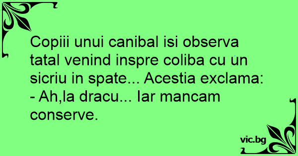 Стар канибал се прибира рано сутринта мъкнейки ковчег. Децата в един глас: – Еййй, пак консерви...